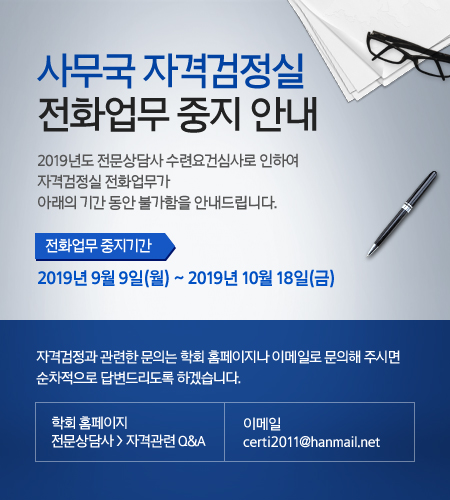 사무국 자격검정실 전화업무 중지 안내(9/9-10/18)