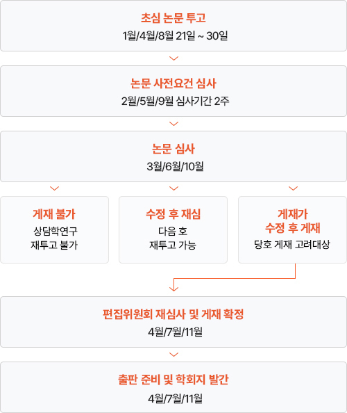 「상담학연구: 사례및실제」 논문 투고 및 심사 흐름도