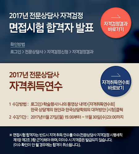 2017년 전문상담사 자격검정 면접시험 합격자 발표(11월27일)