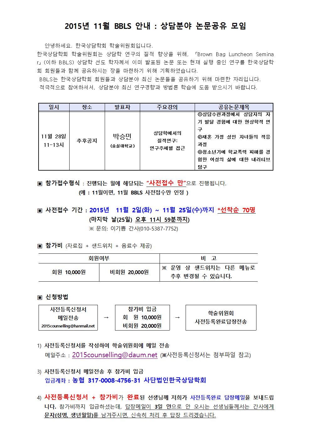 (사)한국상담학회 사무국 주소 : (137-817) 서울시 서초구 방배동 92, 세양아르비체 102-405호 Tel : (02) 875-5830 / Fax : (02) 874-7351 / E-mail : webmaster@counselors.or.kr (사)한국상담학회 홈페이지 : www.counselors.or.kr |