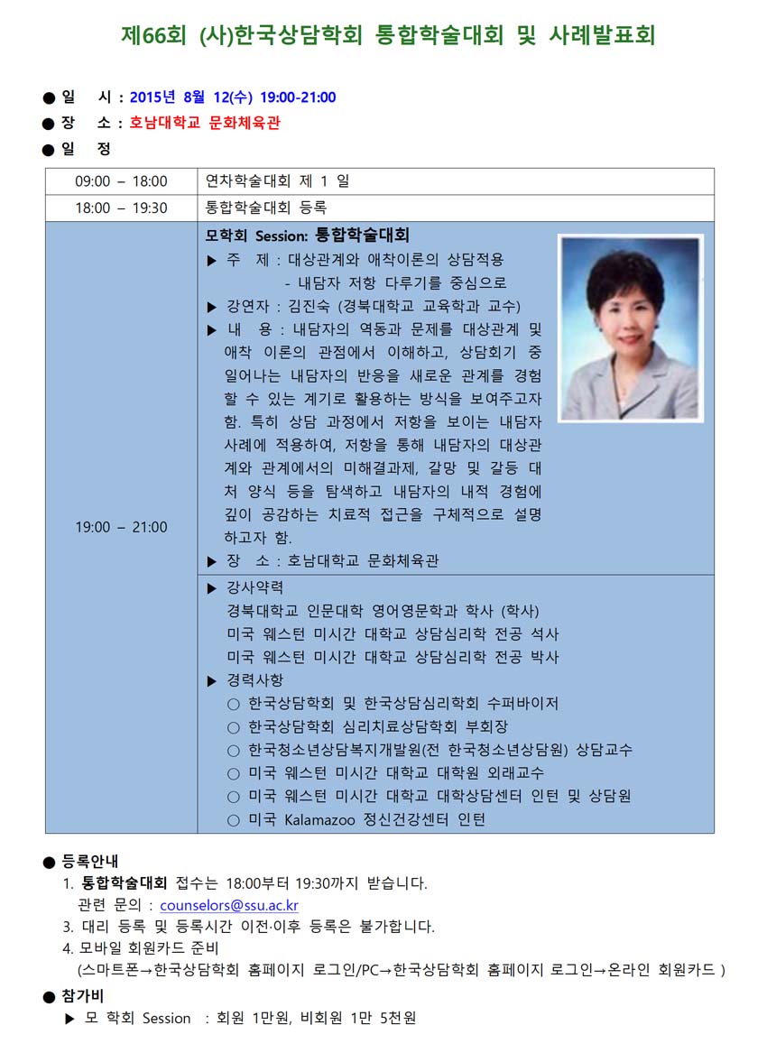 [2015년 연차학술대회] 2차 사전등록 안내(7월26일까지)