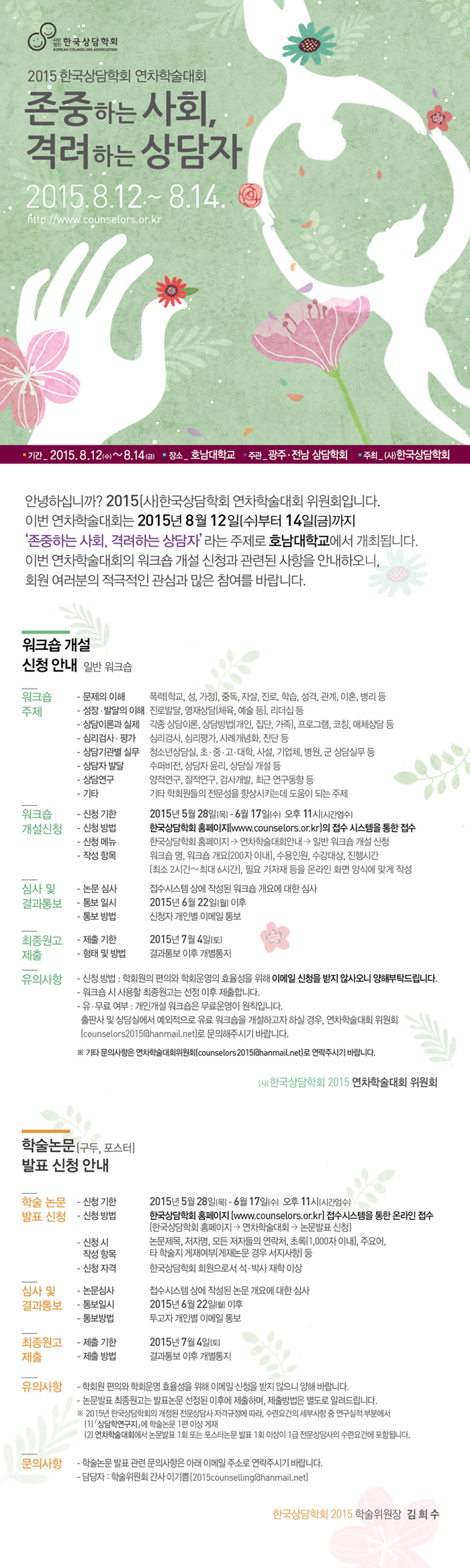 [연차학술대회위원회] 2015년 (사)한국상담학회 연차학술대회 워크샵 및 논문 개설 안내