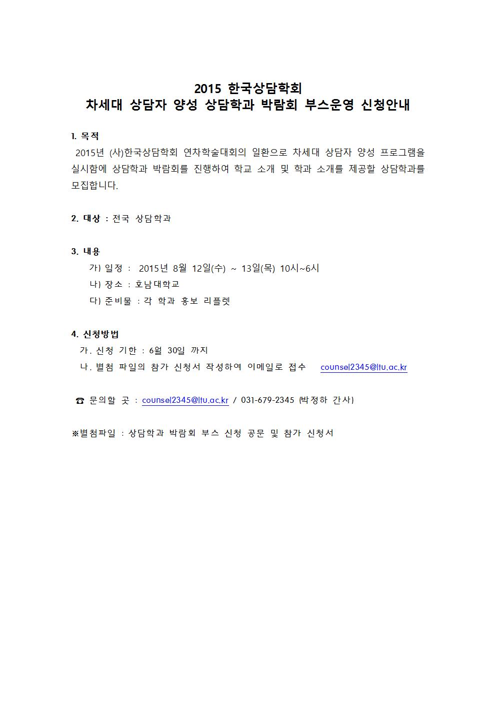 제목 [학생위원회] 상담학과 박람회 부스 운영 신청 안내(6월30일까지)