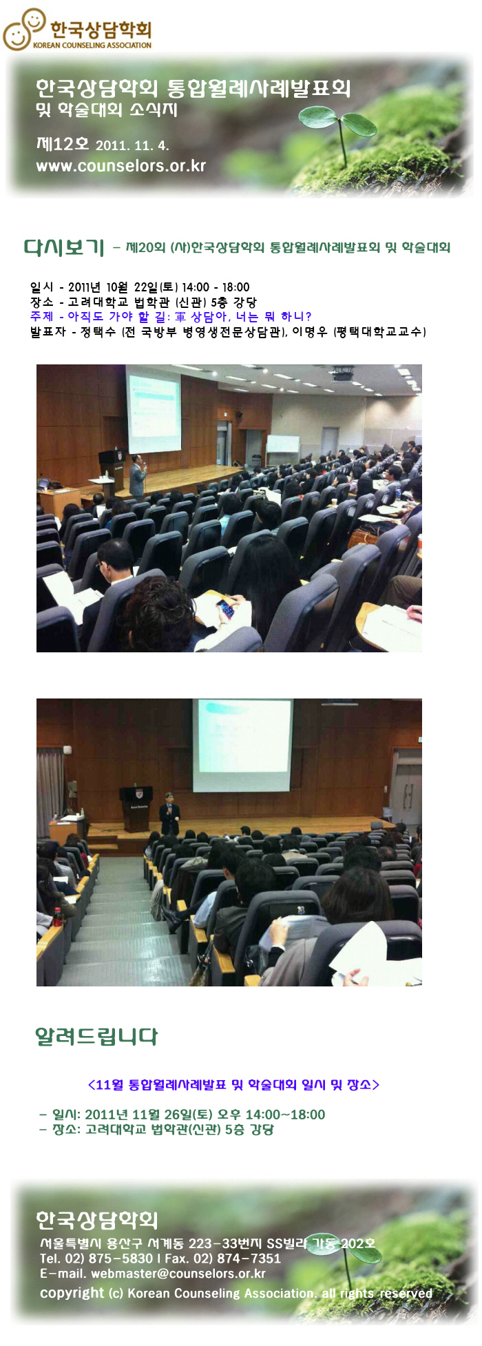 [사례연구위원회] 제21회 통합월례사례발표회 및 학술대회 안내(11월26일)